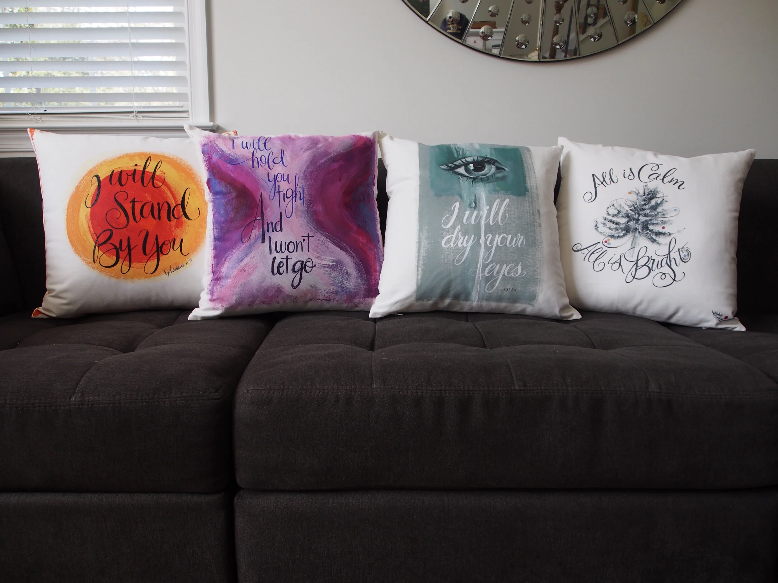 Our pillow covers are 18“ x 18” and made out of cotton canvas with invisible zipper closures in natural and white/soft-white color. Each pillow cover comes with an included invisible zipper, serged interior edges, and soft 10 oz. cotton canvas on both sides